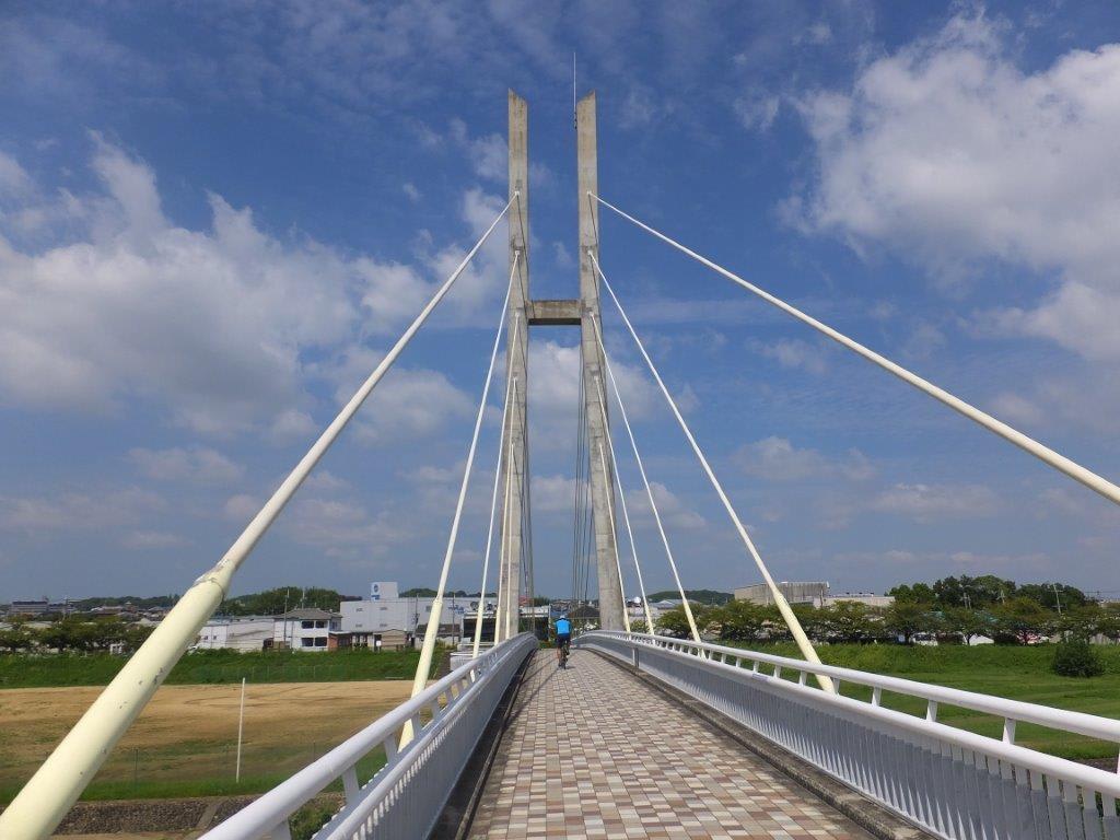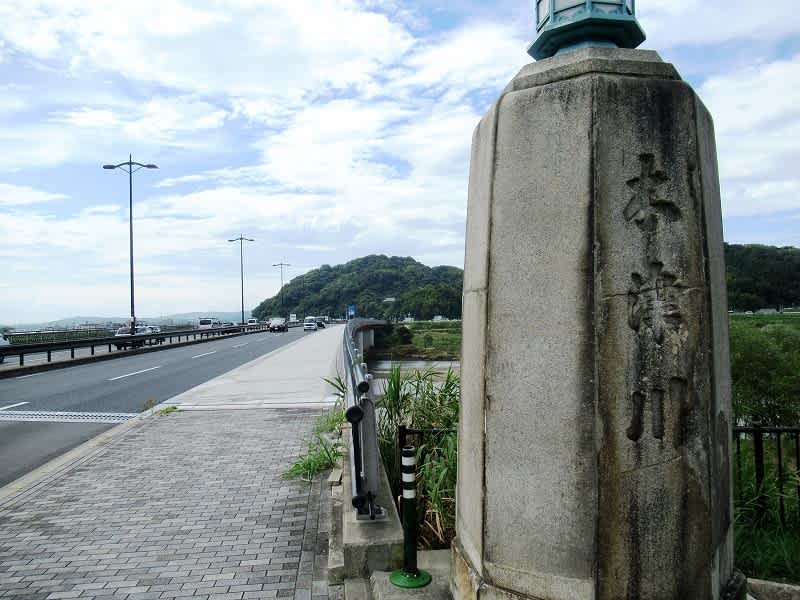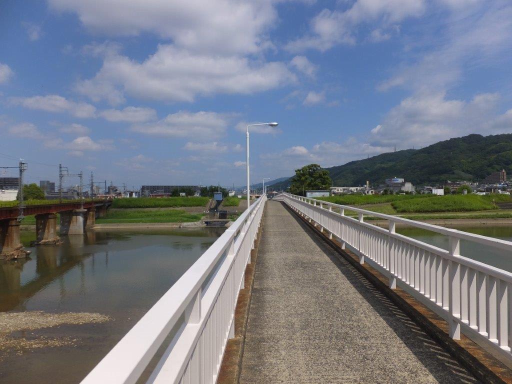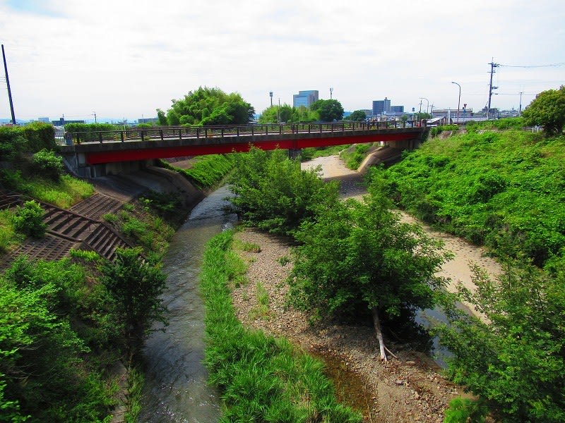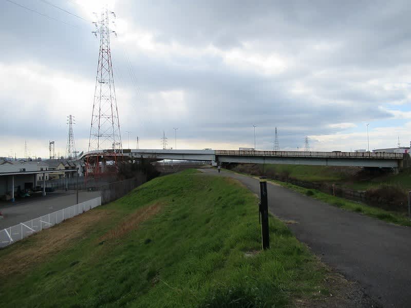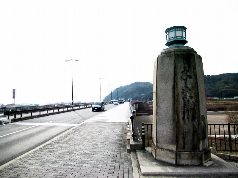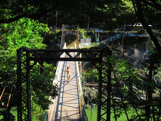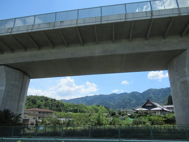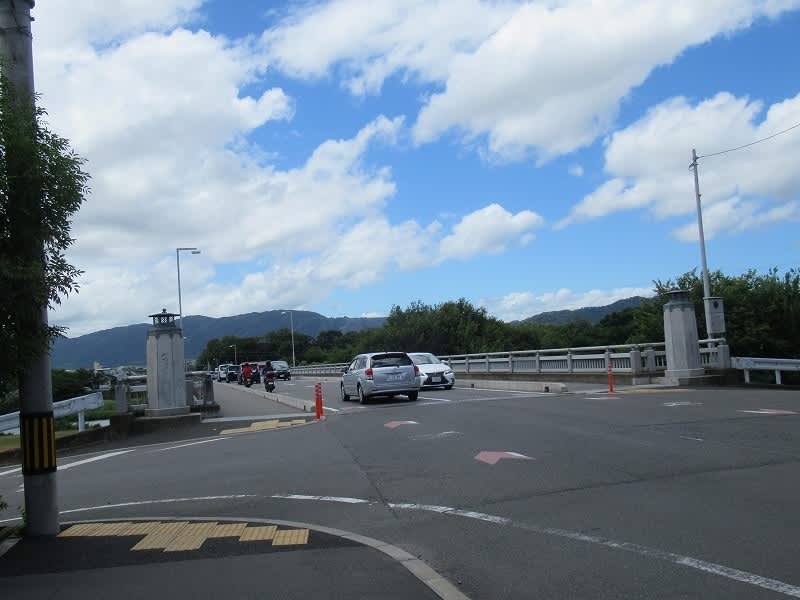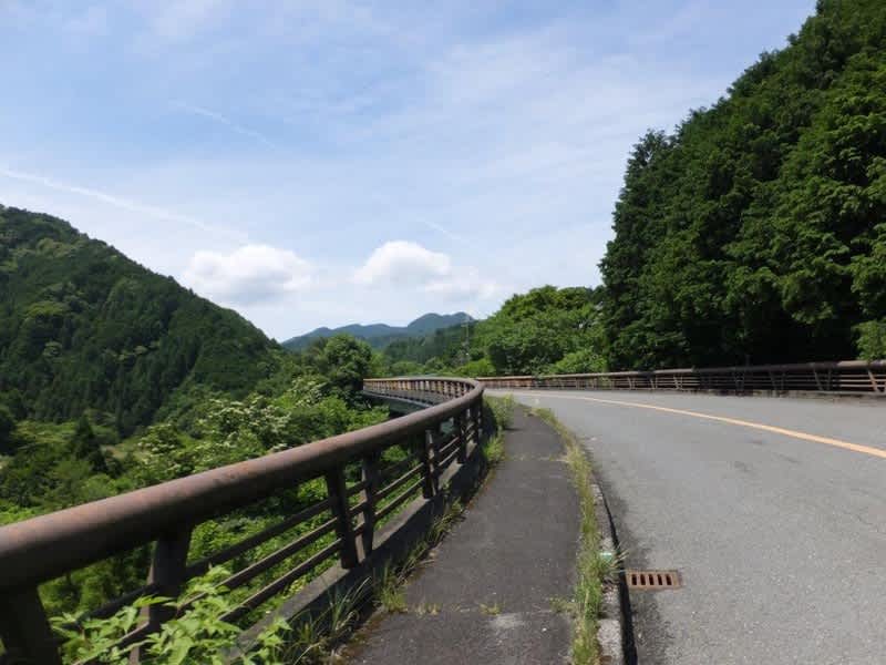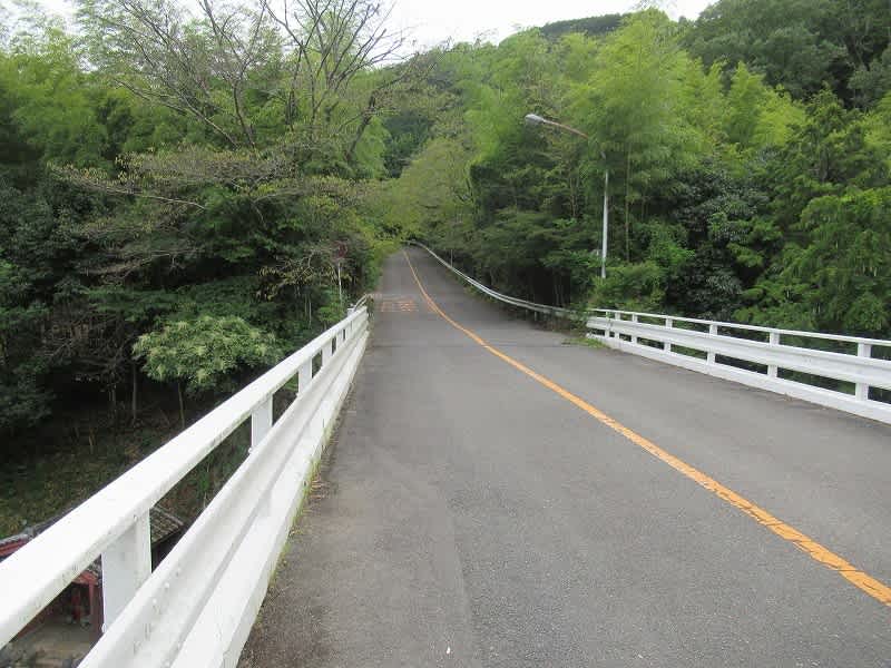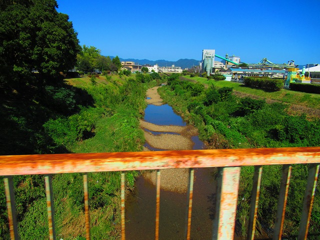 続いて 一文橋を渡ります。正面に見える 西山の上に 今回の目的道路「東海自然歩道」があります。