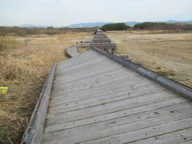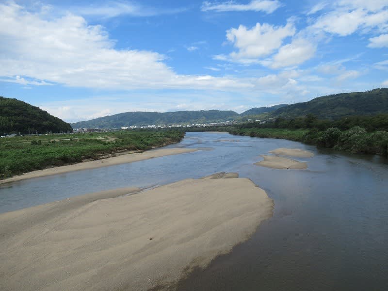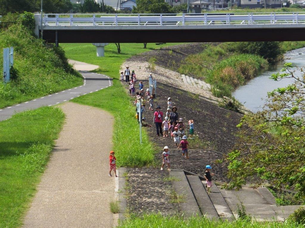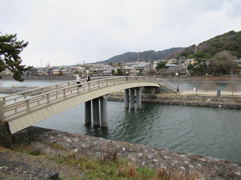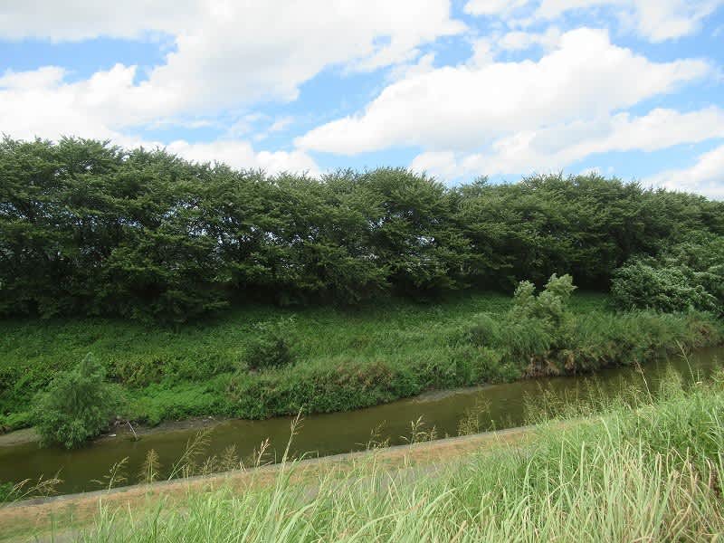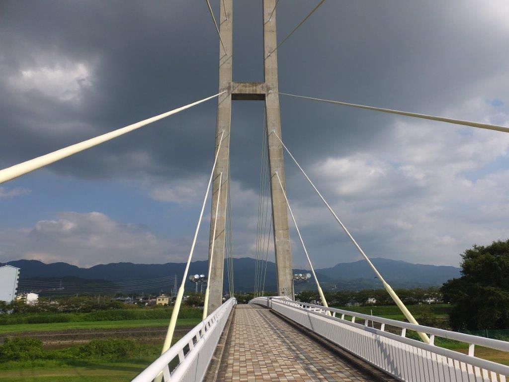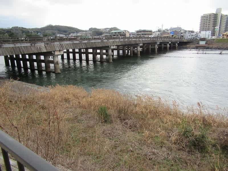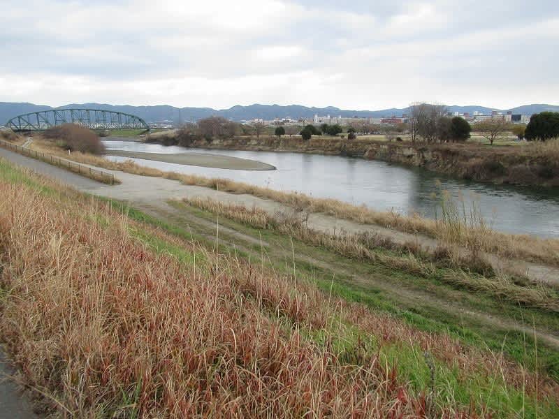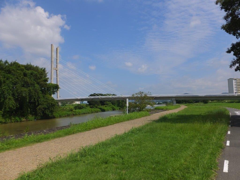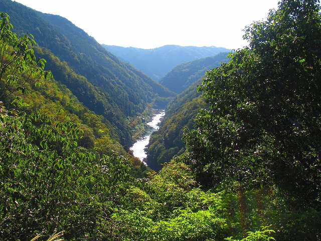 続いて 一文橋を渡ります。正面に見える 西山の上に 今回の目的道路「東海自然歩道」があります。