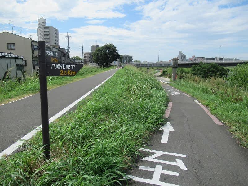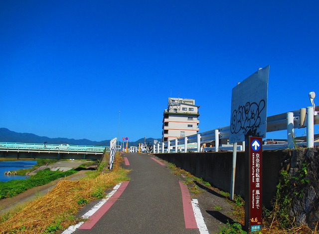 このバイパス区間は短いので5分くらいで走り抜けます。あとは一般国道371号線の歩道を走ります。
