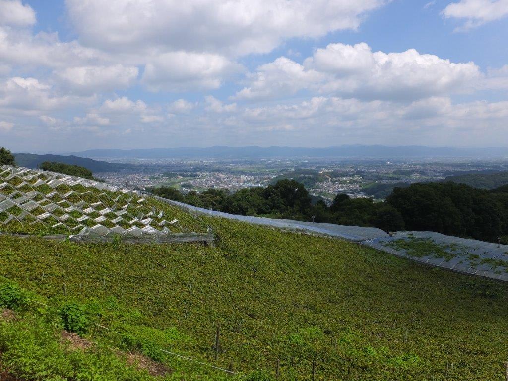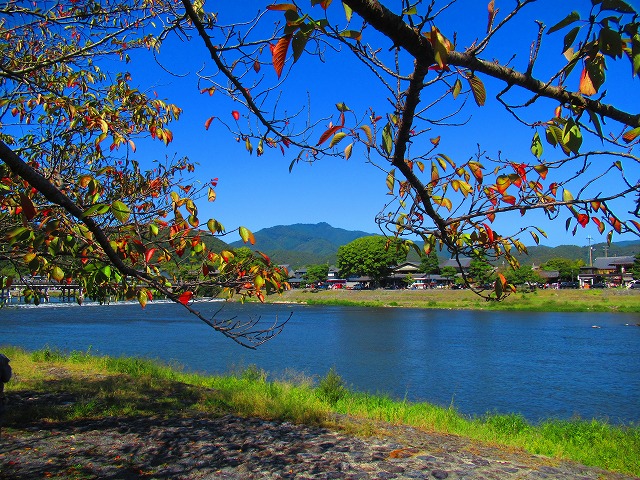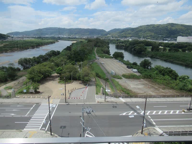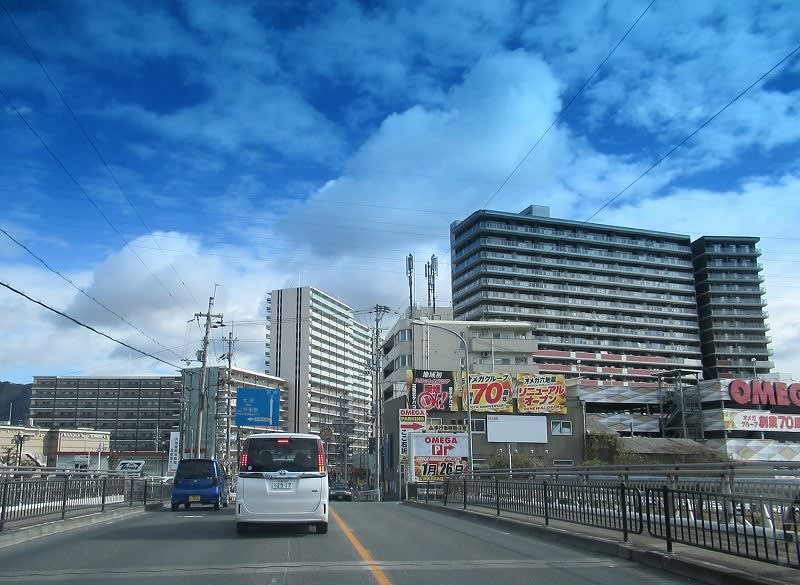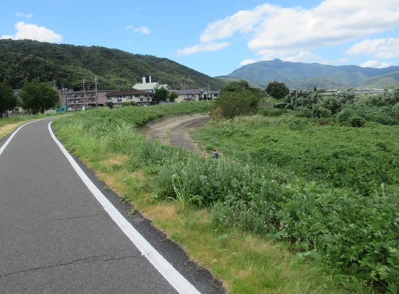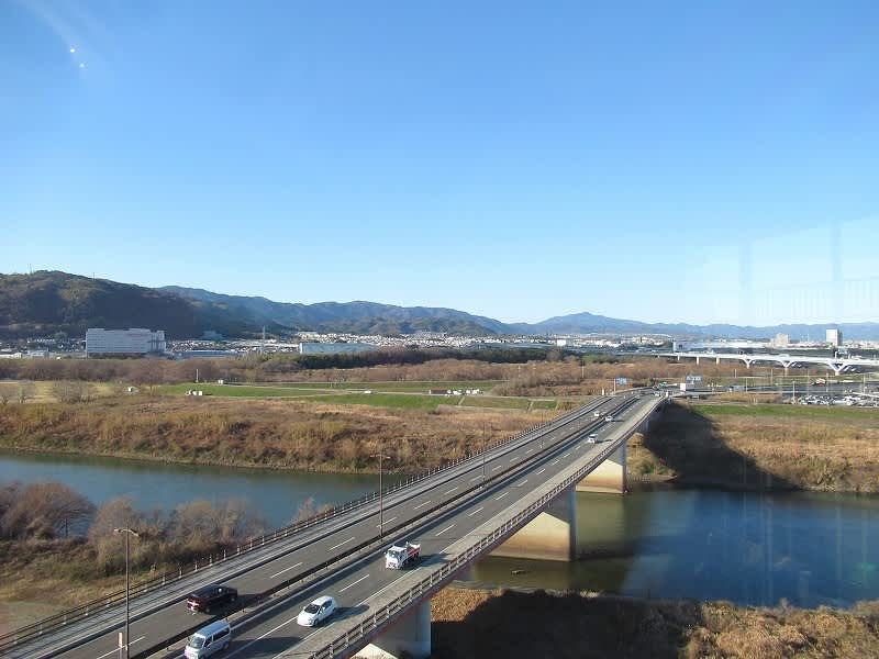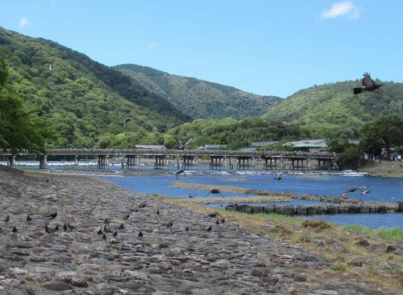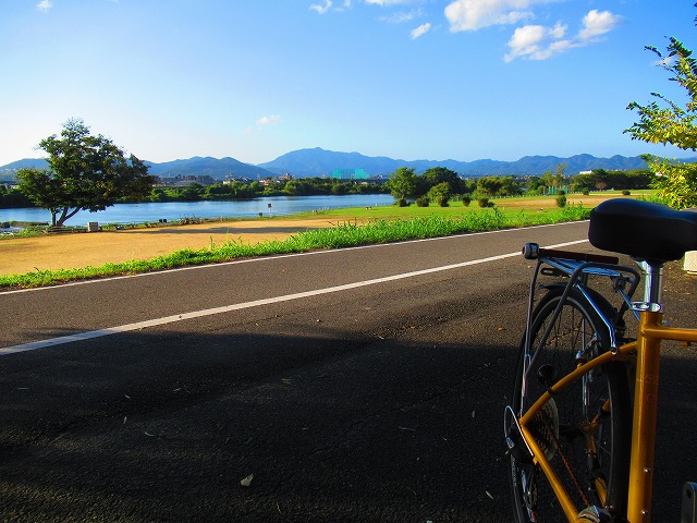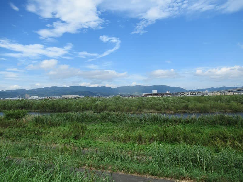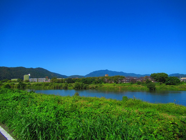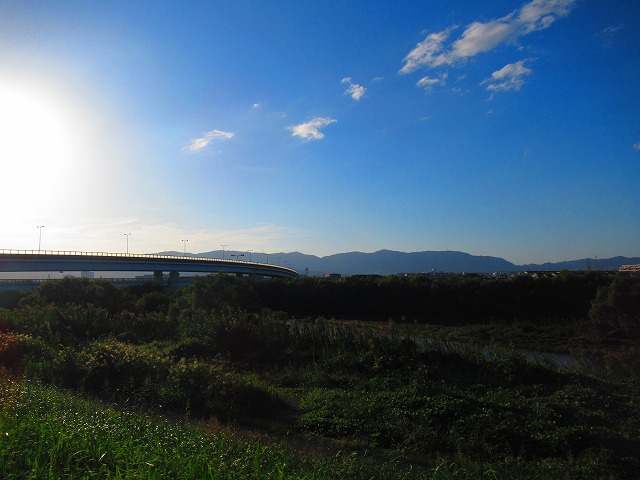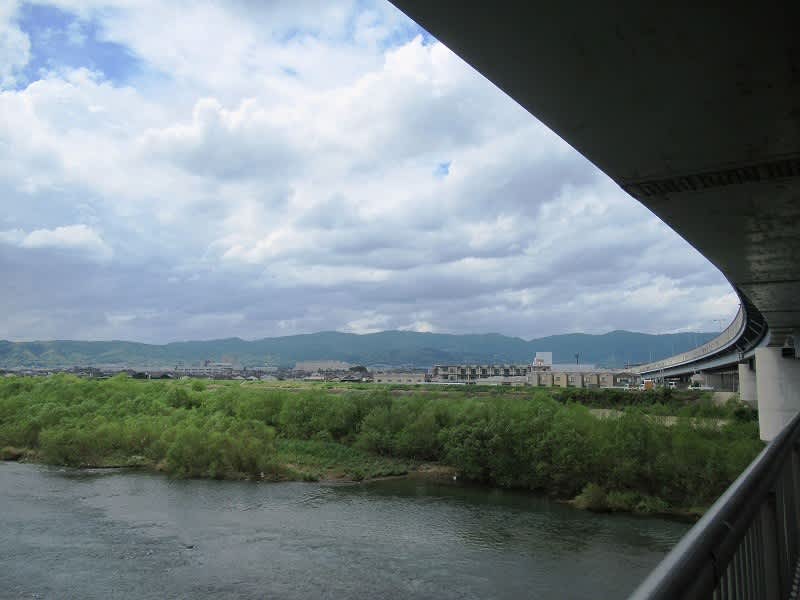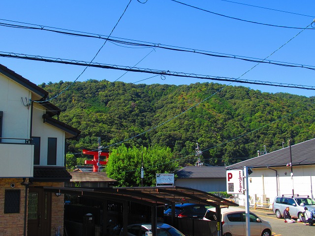 右手には 京都清滝の愛宕山が見えています。ここ数日は雲を被って見えませんでしたが