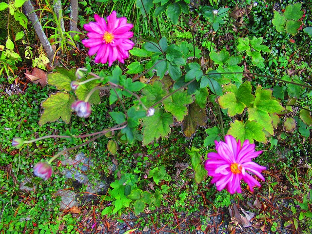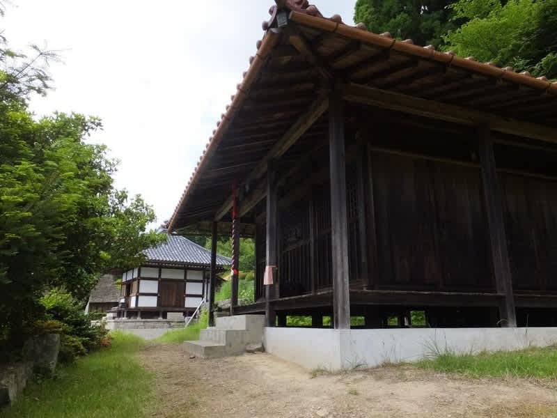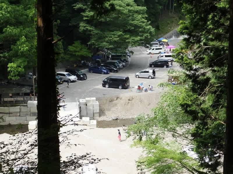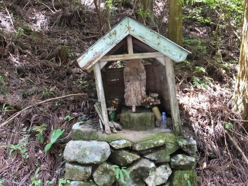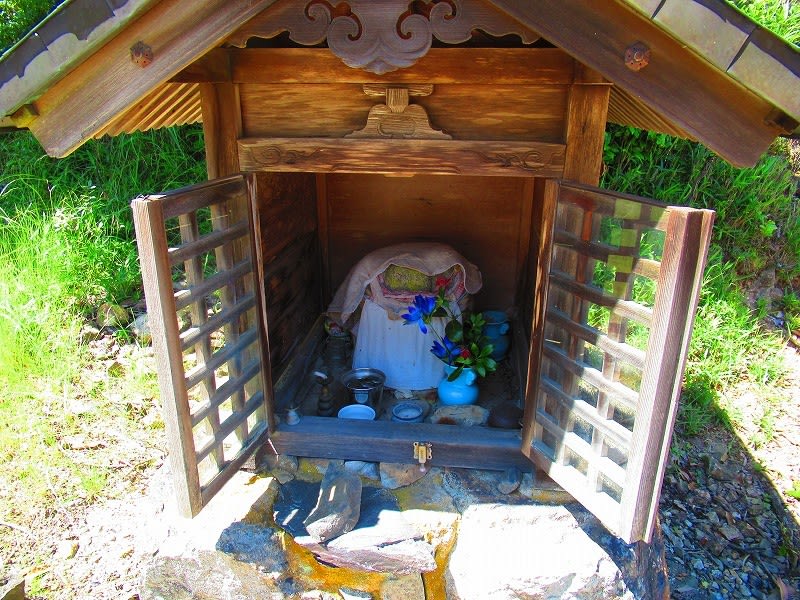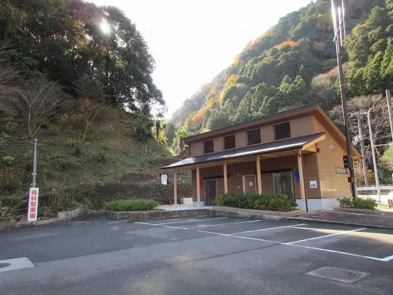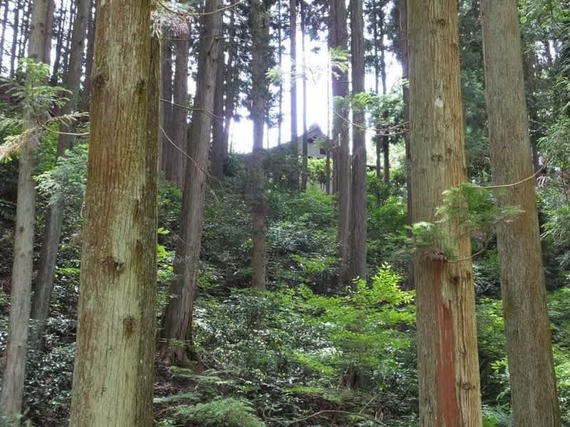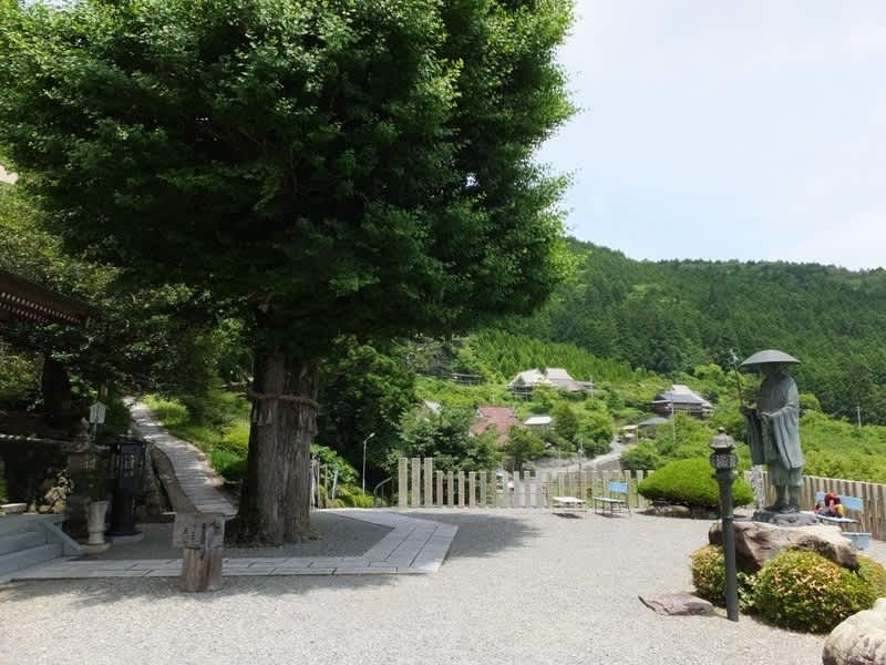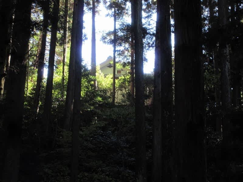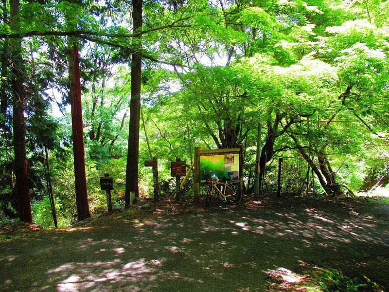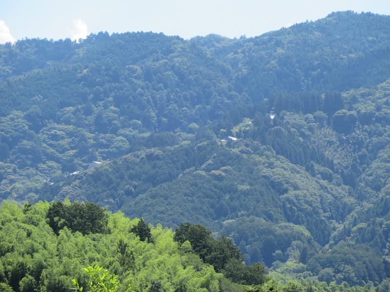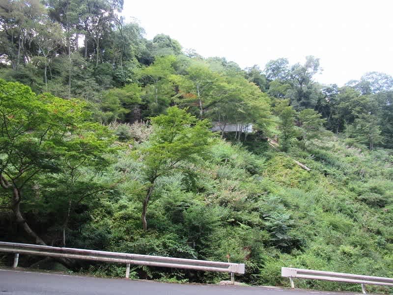 しばらく山道を登ると 広い場所に出ました。お寺の駐車場かもしれません。