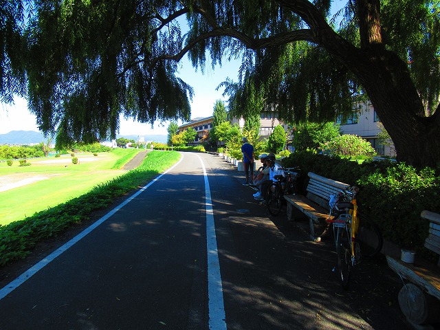 きつい登りが始まりました。日差しがきついうえに 必死でこぐから汗が目に入り痛くて前が見えにくいので