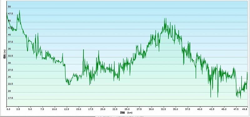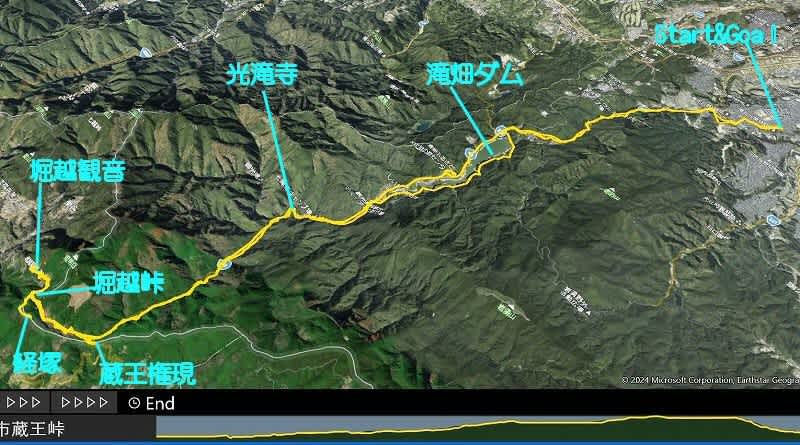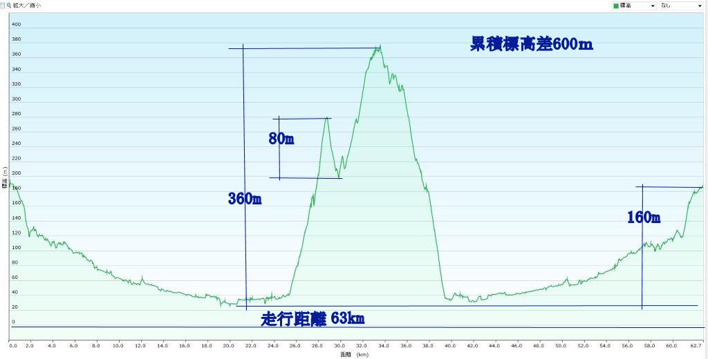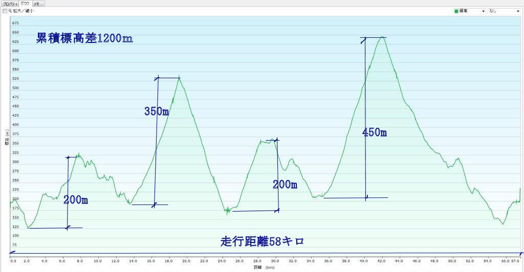 走った距離は約58キロでした。高低差の累計は1200mありました。
