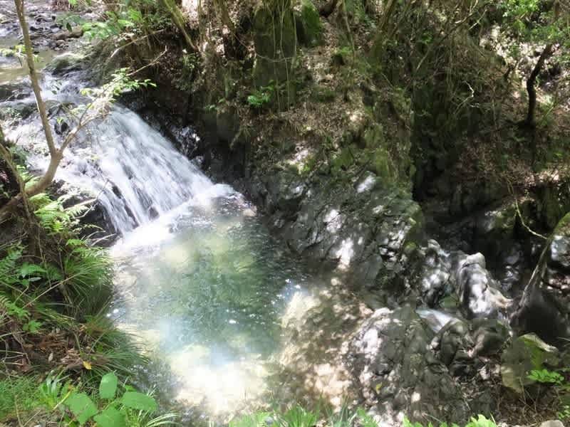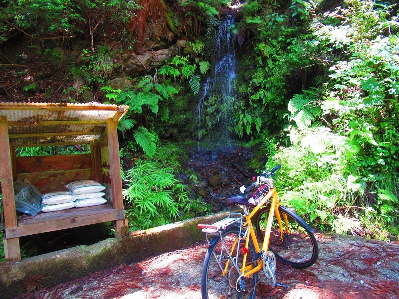 ちょうどいいところに滝があったので 顔を洗います。冷たくて気持ちいい。