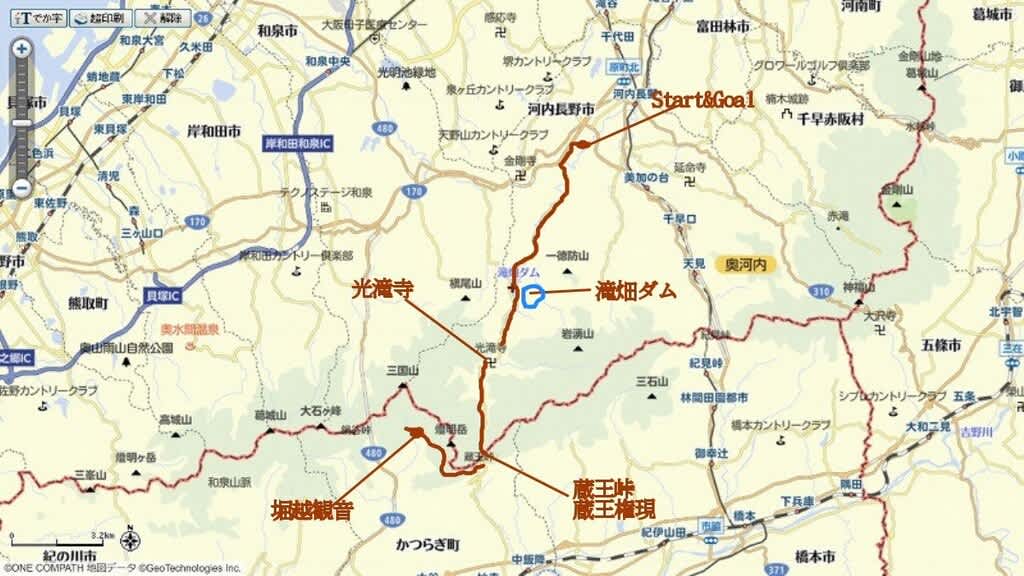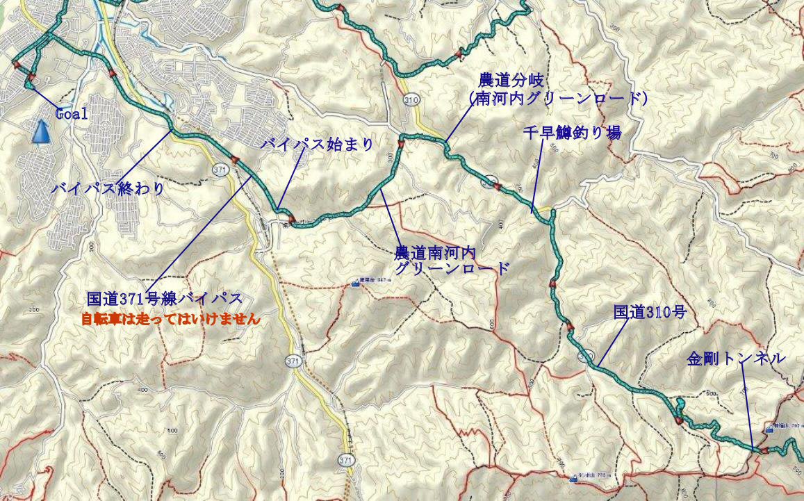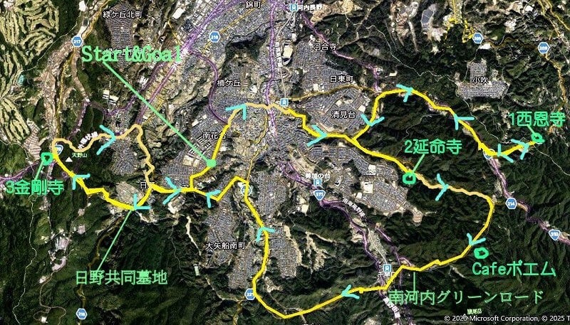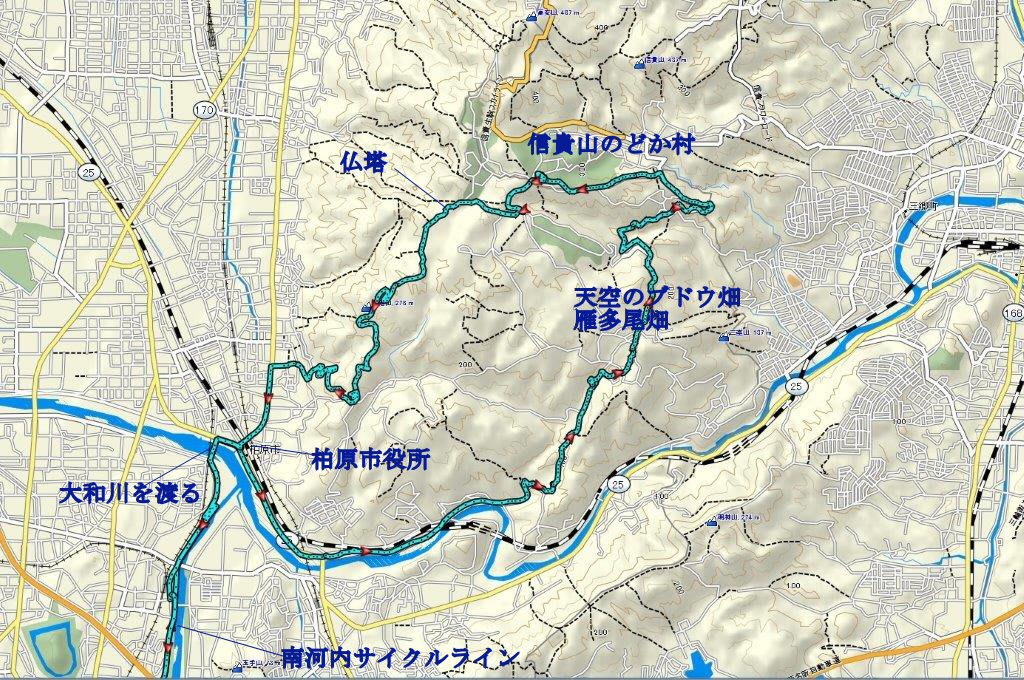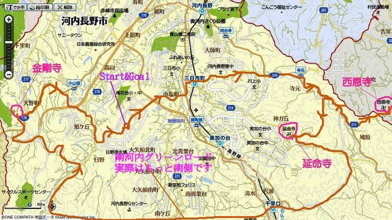 今回のコースです。南海電鉄三日市駅を出発して、河内長野市惣代