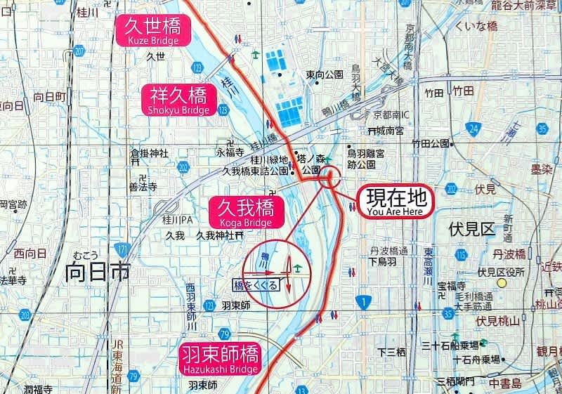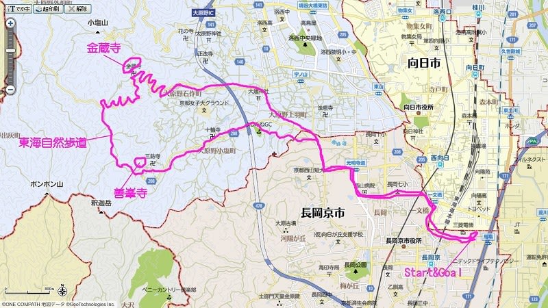 なんだって。この京都府道733号線柚原向日線が東海自然歩道だって。なんのこっちゃ。