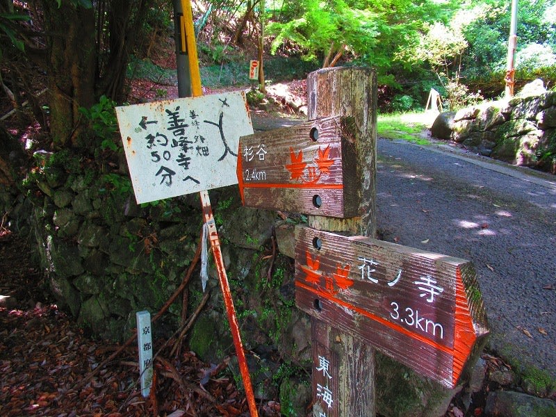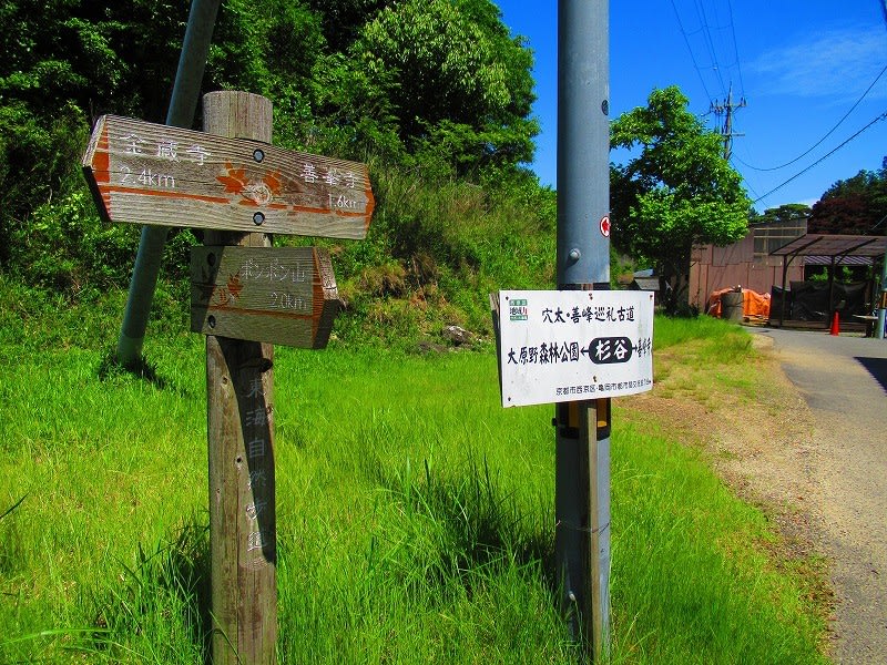 ここから 左の山道を進むと杉谷集落から善峯寺へ行けるそうです。