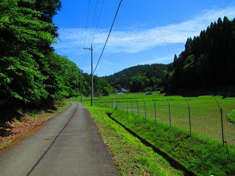 住宅地を駆け下りて、うららかな日差しの「加賀田集落」を走る。