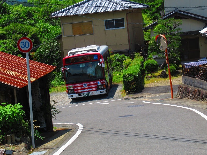 あんな大きな路線バスが こんな細い山道をどうやって上ってきたのか不思議です。
