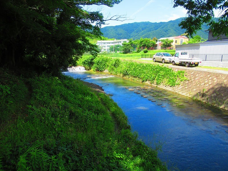入り口近辺の この辺りは池塘のような池があり 川が流れてとてもきれいです。いつも水が流れていたり