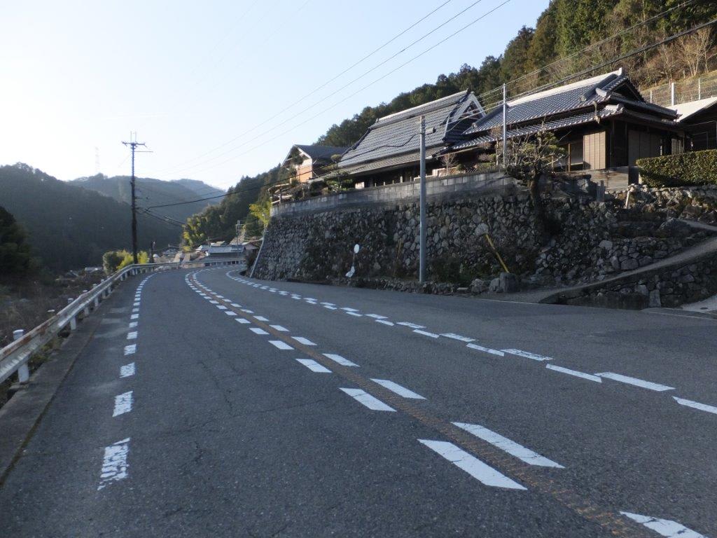 お寺を出て 分岐まで戻り 再び府道を登ります。