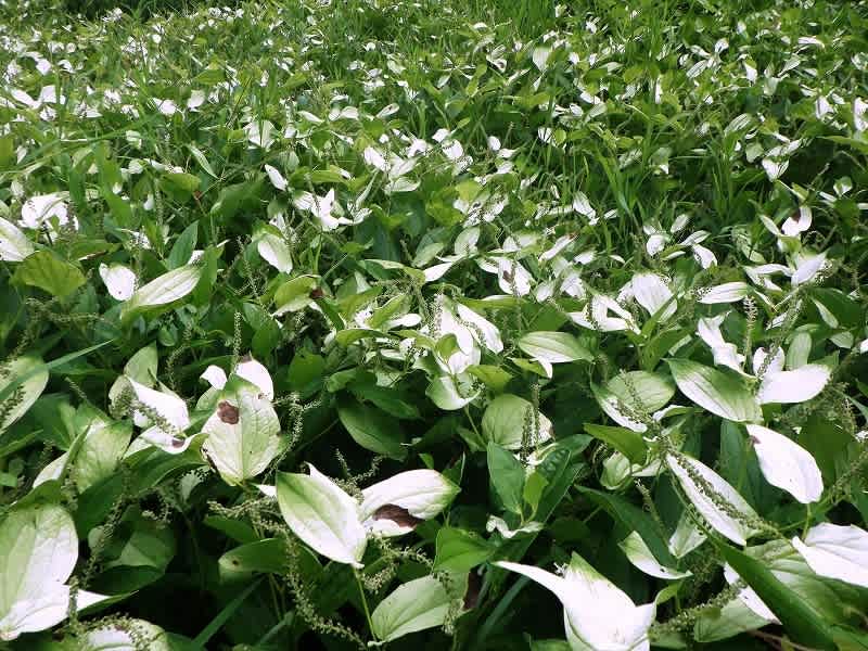 半夏生です。前日の大雨で かなり半夏生が倒されていました。