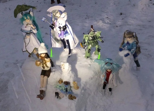 雪道で自慢のフィギュアを展示ライトアップされている方もいらした。