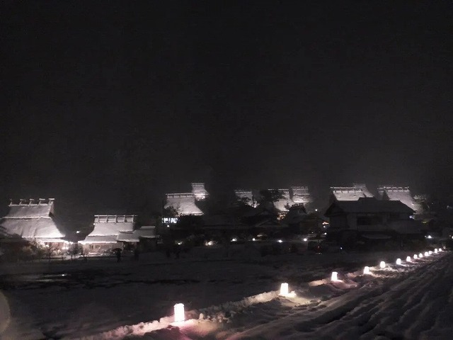 静かさを取り戻した村の集落の道を雪洞が照らす。