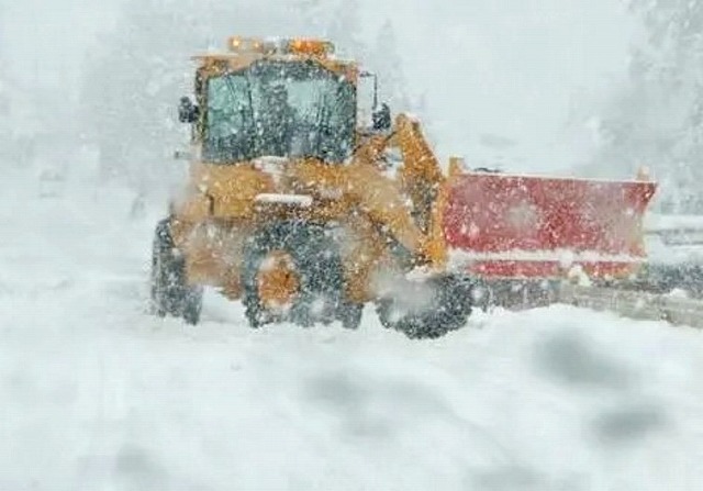 道路は除雪車のため、たびたび立ち止まってやり過ごす。