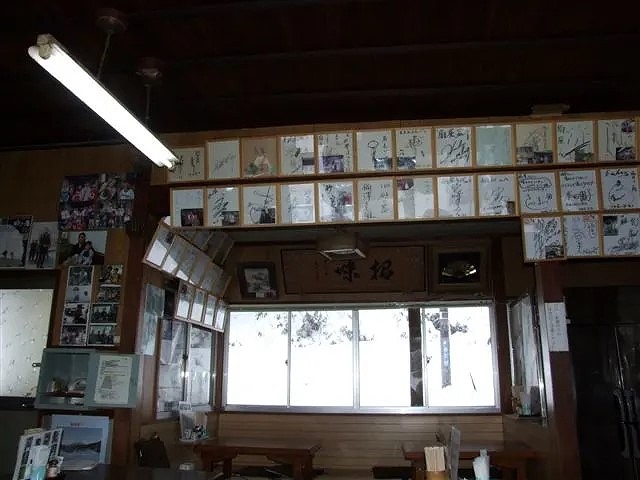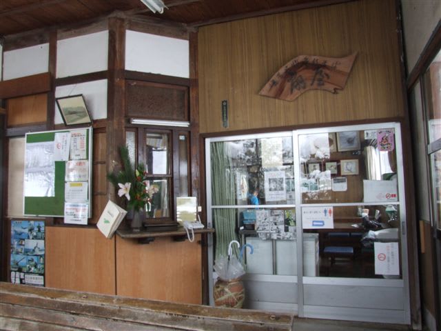亀嵩駅舎の待合室の一部が 有名な蕎麦屋さんになっている。