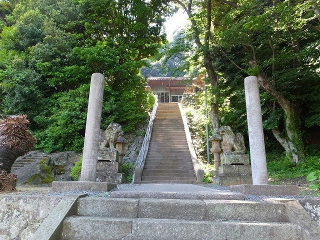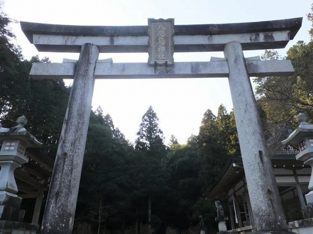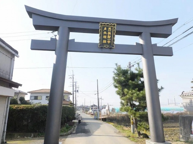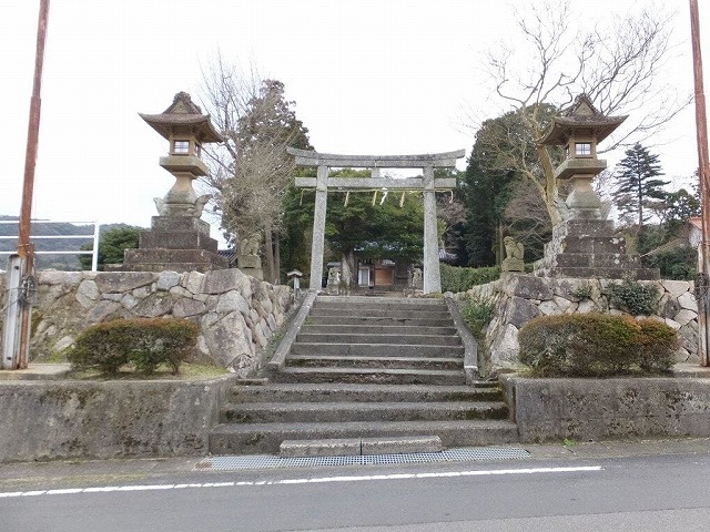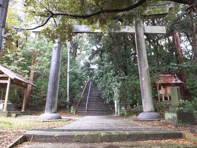 神社入口の石段前の鳥居です。丸柱が2本左右に建てられていて これに注連縄が張られます。