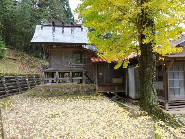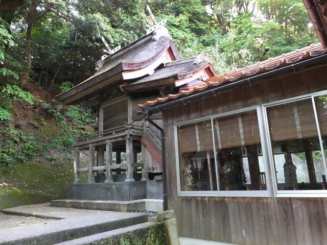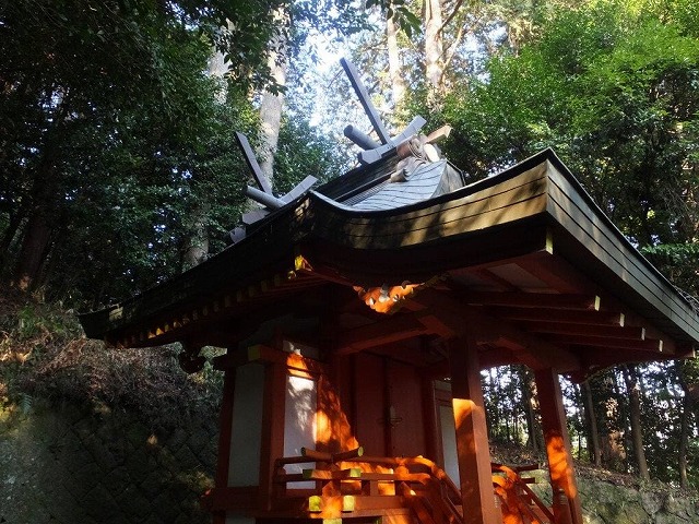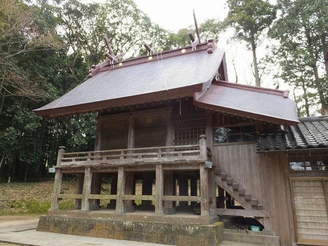 本殿です。小さいながら大社造りで 千木も出雲方式の縦削ぎです。