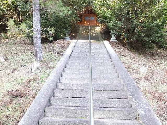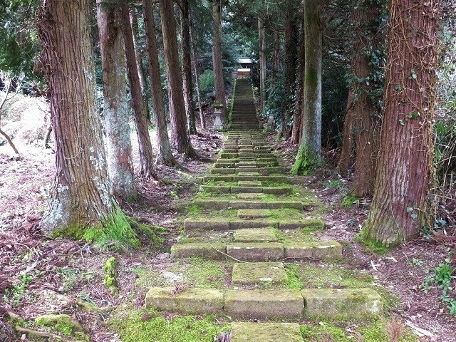 暫く石段を登って振り返ると 鳥居が小さく見える。石段はまだまだ上へ続くようだ。