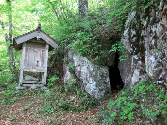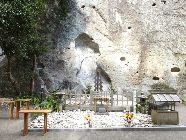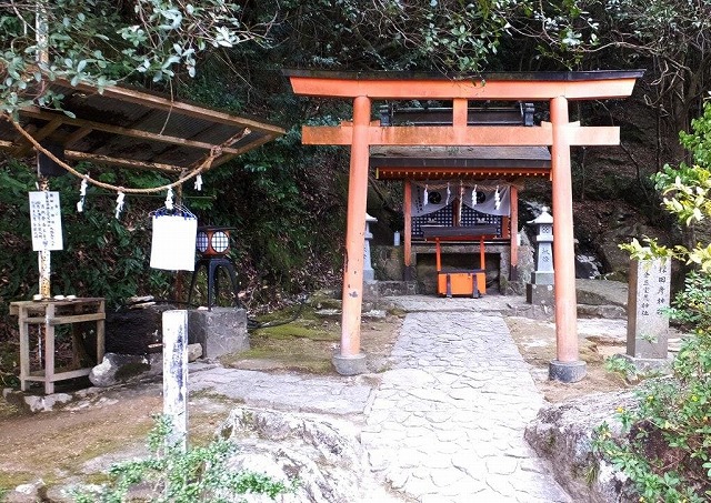 三つ鳥居の左にクナドの神が祀ってある。夫婦和合の神も安置されている。
