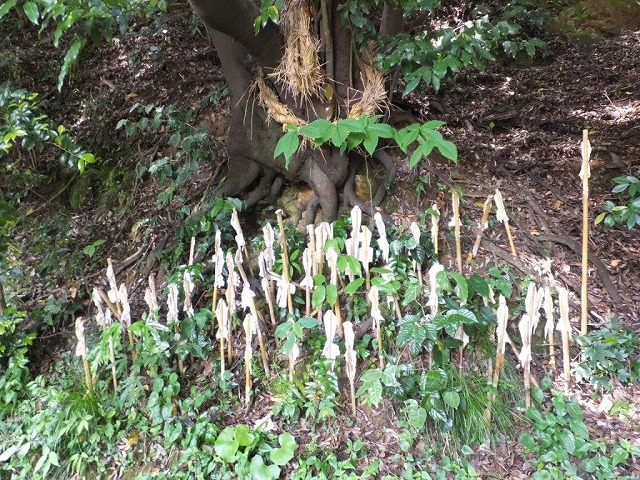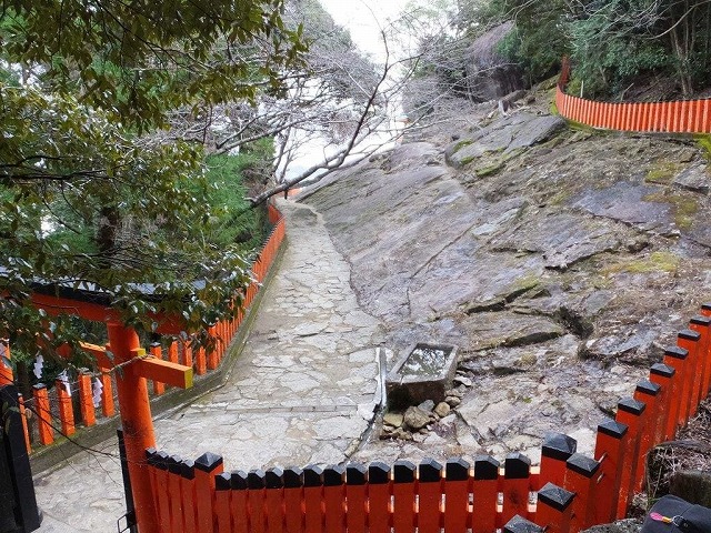 鳥居の脇に 竹の杖がたくさん置いてあったが、杖を借りてきて正解だった。