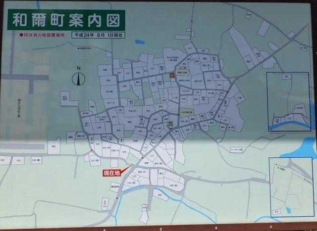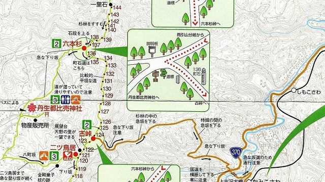 案内図の茶色の部分だけが石畳であとのグリーンの道はアスファルト道路です。