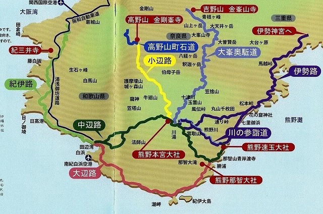 またブルーの道が伊勢路です。伊勢神宮より熊野本宮大社へ至る参詣道が伊勢路です。