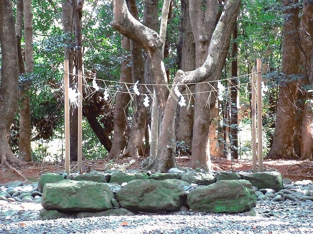 男神として根の付いた木を用い、根は男性器のシンボルでした。鏡の丸い形は女性器のシンボルであり、