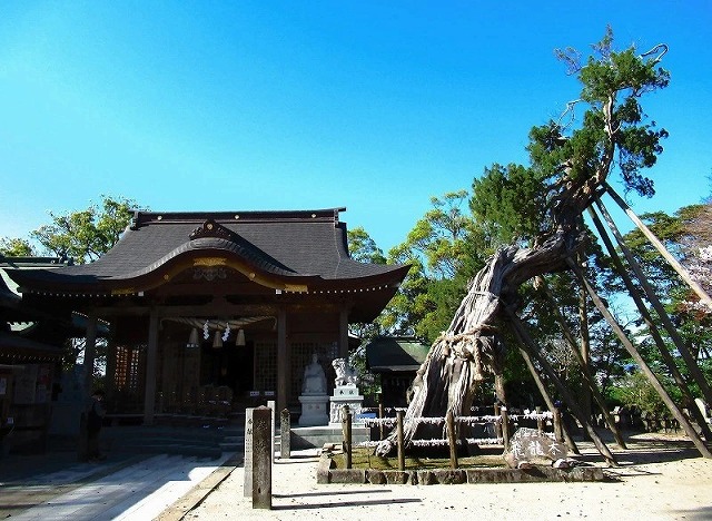 これが境内のビャクシンの木です。徐福が上陸の記念に植えたといわれています。