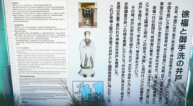 私もかつて世界文化遺産熊野古道のトレッキングをしているときに2度、徐福上陸地点と言われる場所に遭遇しました。