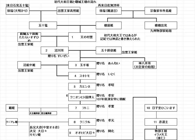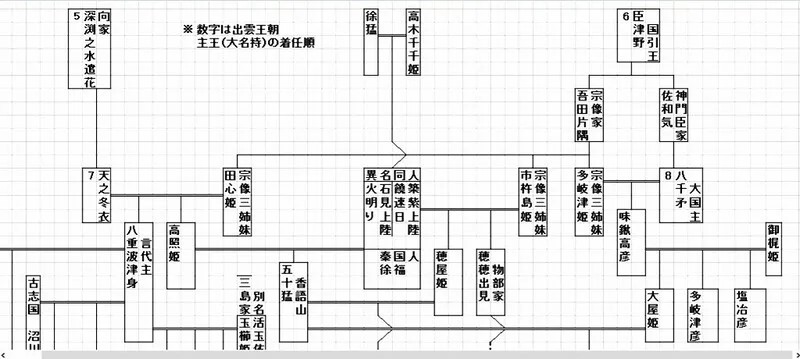古代出雲王朝初期の系図です。