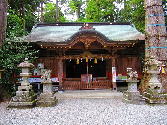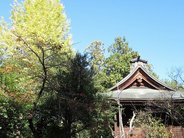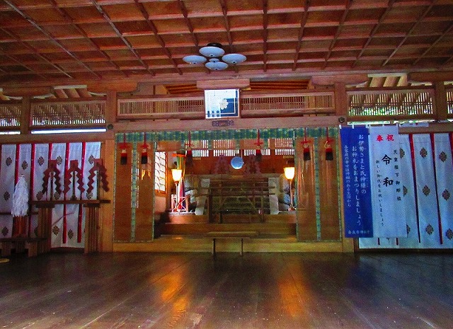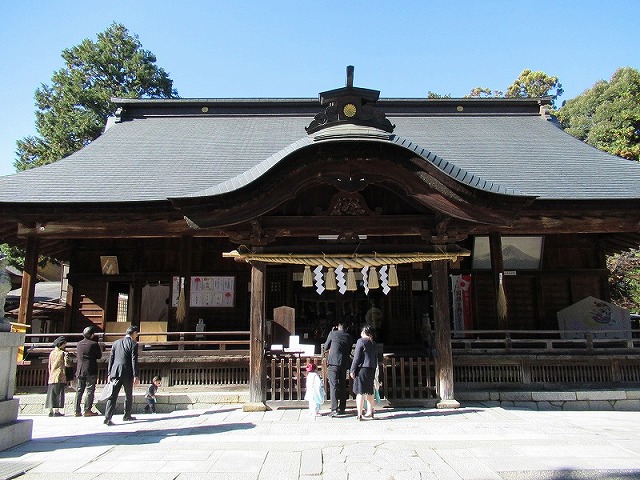 拝殿の右奥に本殿の屋根が、少しだけ見えています。