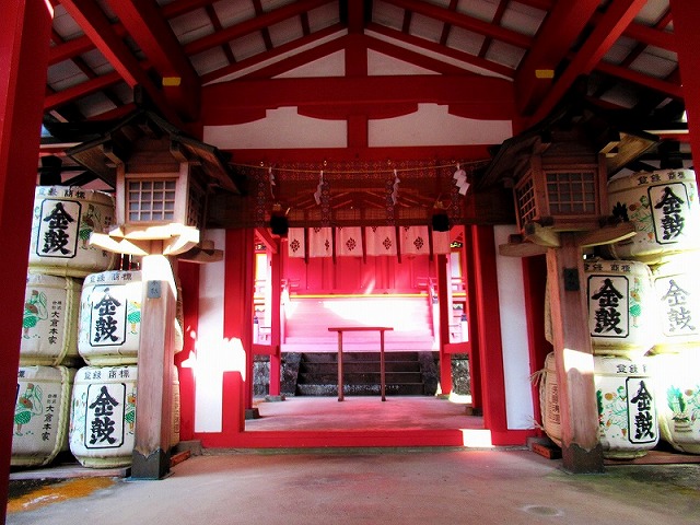 拝殿の奥、扉の向こうには 本殿があるようです。本殿の形は横からも見えませんでした。