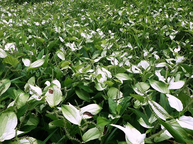 御杖村岡田の谷の真夏の半夏生(はんげしょう)の群生です。谷全体が白くなっていました。