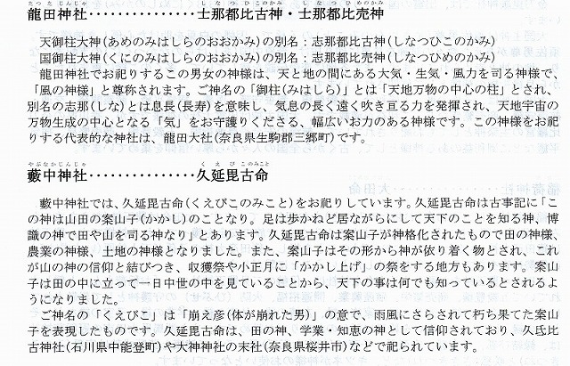 この神社の末社の 藪中神社の祭神 久延比古命(くえひこのみこと)は案山子の神だと言って