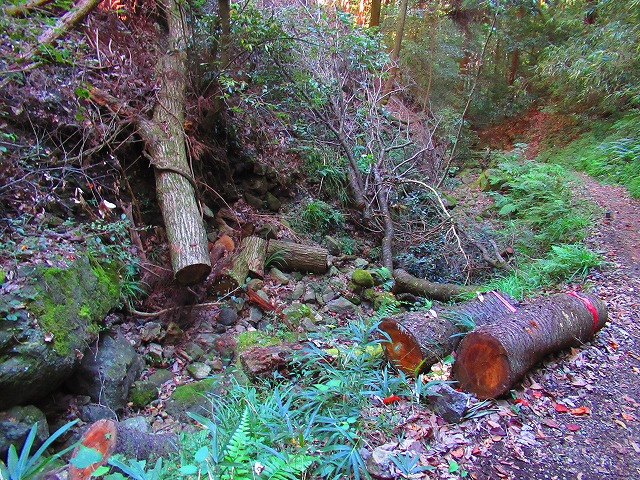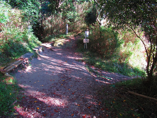 私が何回も標識をぶら下げてもすぐに外されてしまいます。林道へ下りる道はきれいな山道ですが