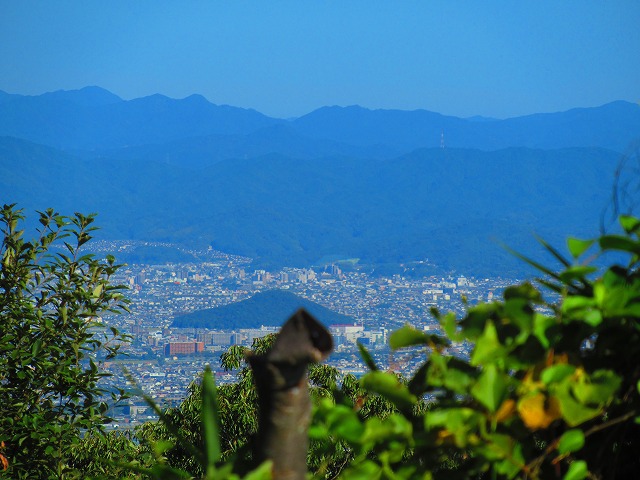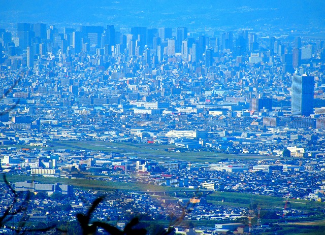 すぐ足元の御所市は見えますが その先の大和高田辺りは 霞んで見えません。