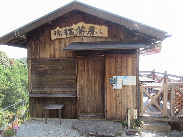 石畳道を降りて国道わきのこの茶屋のわきから下へ降ります。