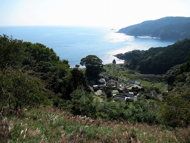 あそこから 眼下に九鬼集落が見えましたが ここからはあの山の向こう側で見えません。