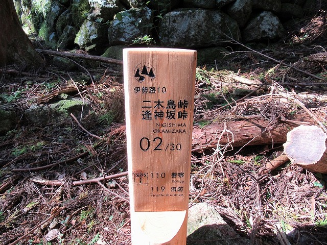 登り口のこの道は後でわかるのですが、国道で伊勢路を破壊した時に復元した