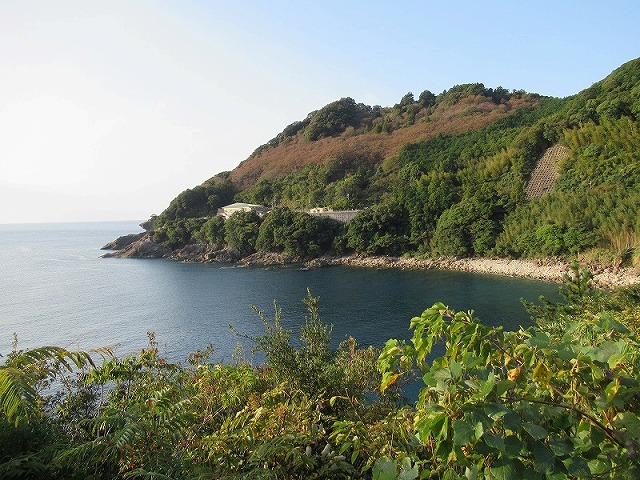 眼下に熊野灘を見ながら道を降ります。アスファルトの道ですが伊勢路です。