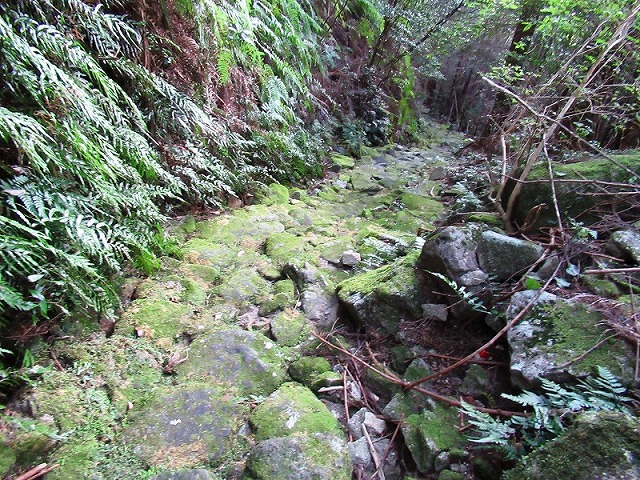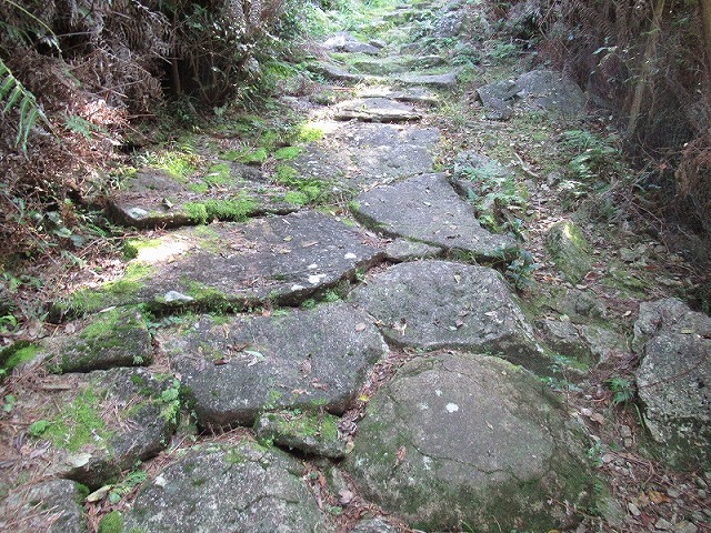 しばらく歩いてこのあたりから本物の石畳道になります。