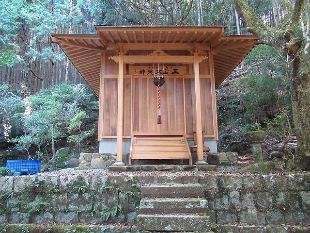 拝殿、本殿すべて小屋に覆われていて建物はおろか 神社の名前も見当たりません。