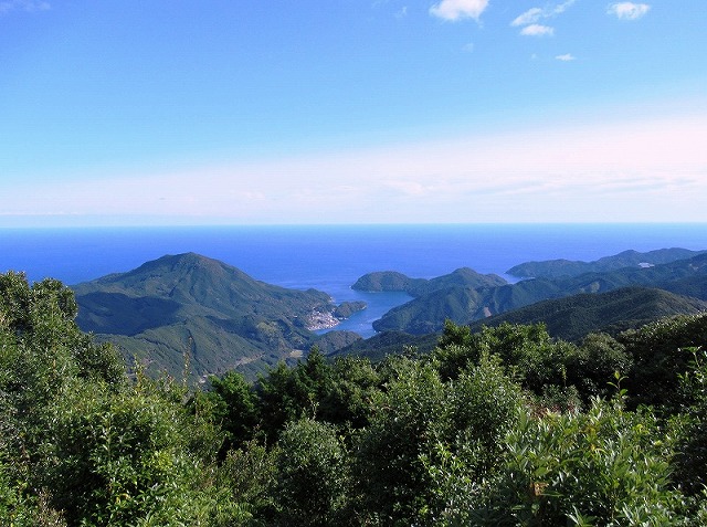 木々の間から尾鷲の町並みが見えます。以前は尾鷲市内の尾鷲神社の横からこの峠を登りました。