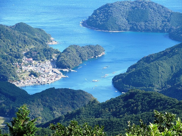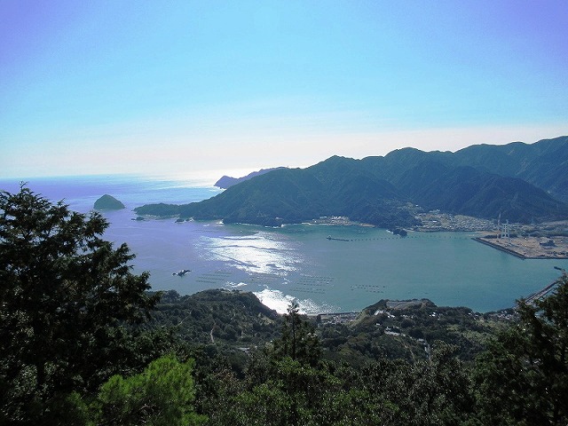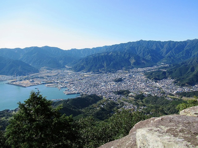海側の別の岩へ登ると 眼下に尾鷲湾と熊野灘が広がります。