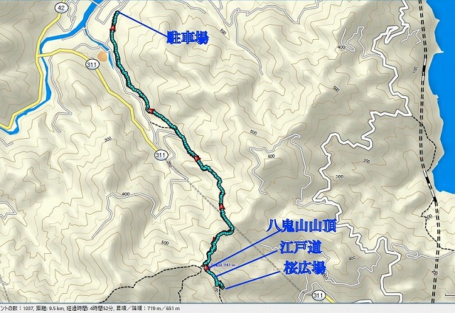 登山口が海岸近くにあるので 標高差は ほぼ八鬼山の高さでした。