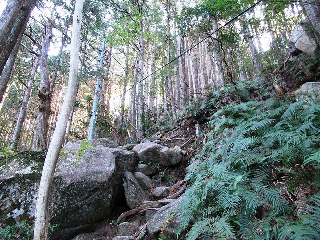 天狗倉山への道は急登続きです。短い距離で200mの高さを一気に登るからです。