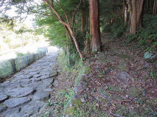 左が駐車場から来た道ですが右の石畳道を歩いてみます。