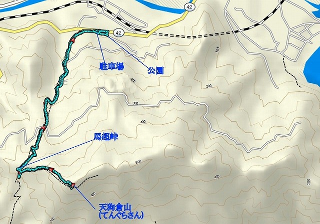 登山口から馬超峠へ登り そこから分岐して天狗倉山へ登る計画です。