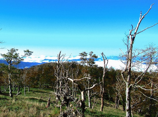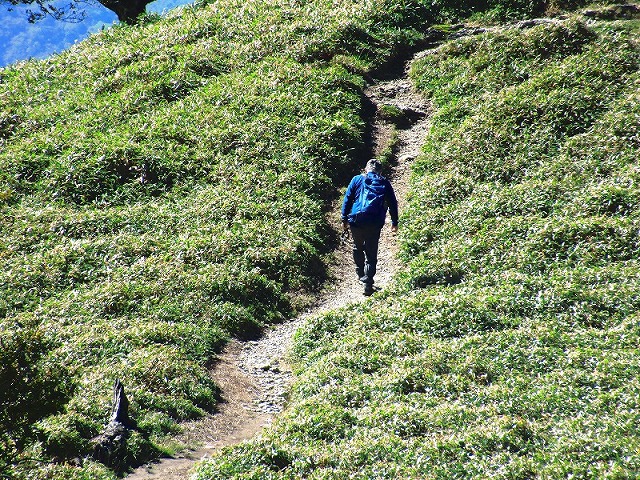 急に晴れてきました。もう誰も奥駈を歩く人は居ません。マイペースでどんどん歩けます。
